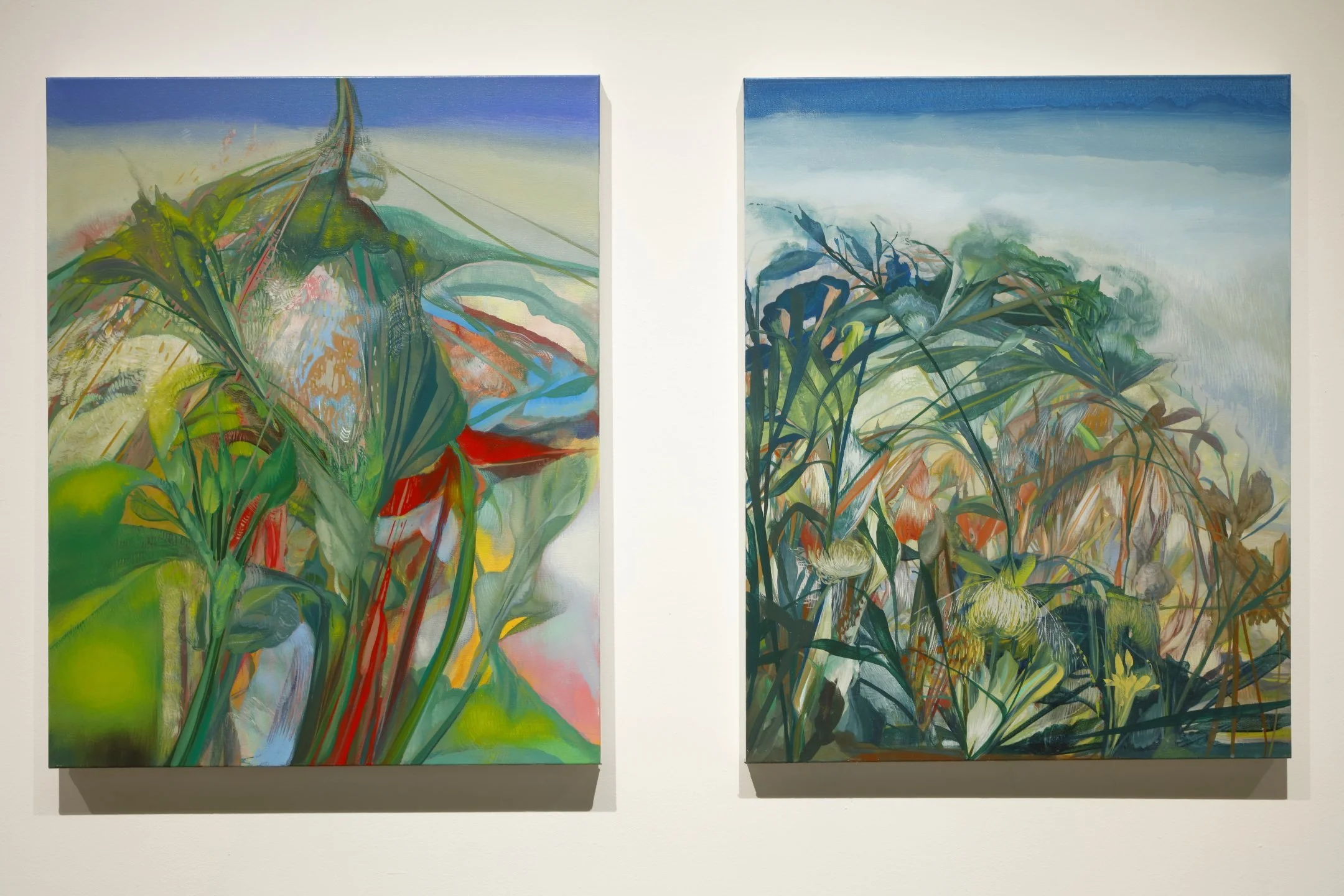 On Right: Silverline Guide, 2022, 30 x 24 inches, acrylic on canvas