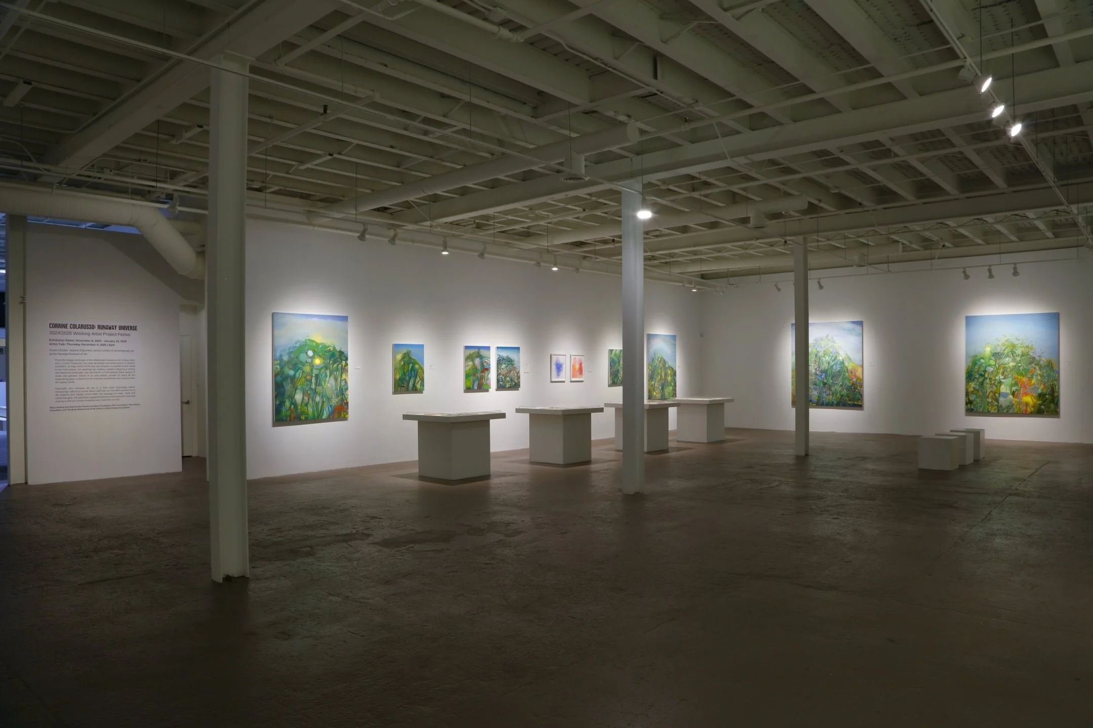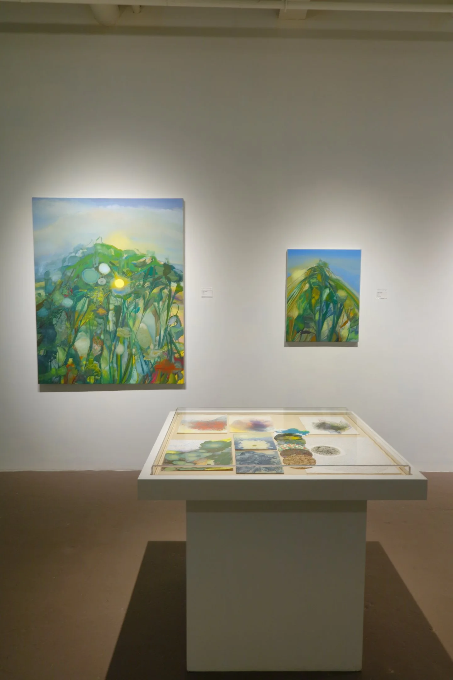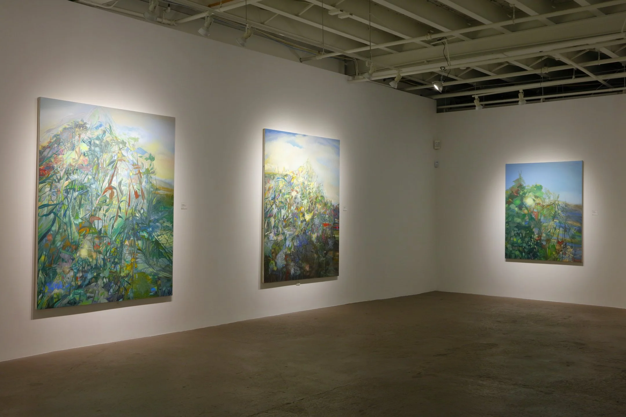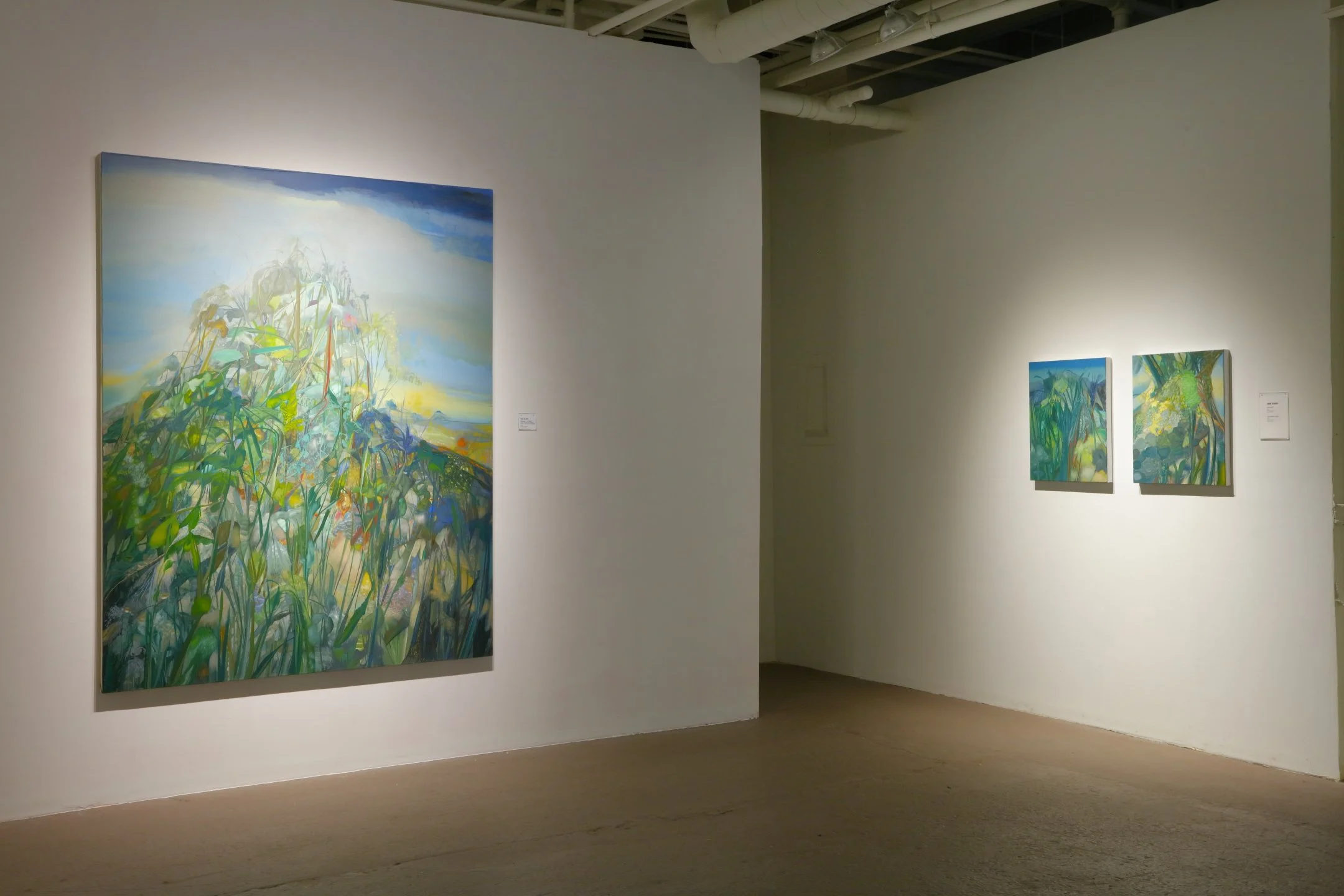 Pictured on right wall on right: A Thousand Particles of Twilight, 2025, 24 x 20 inches, acrylic on canvas