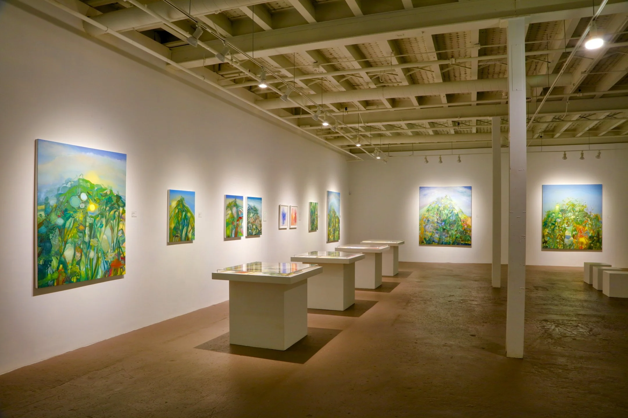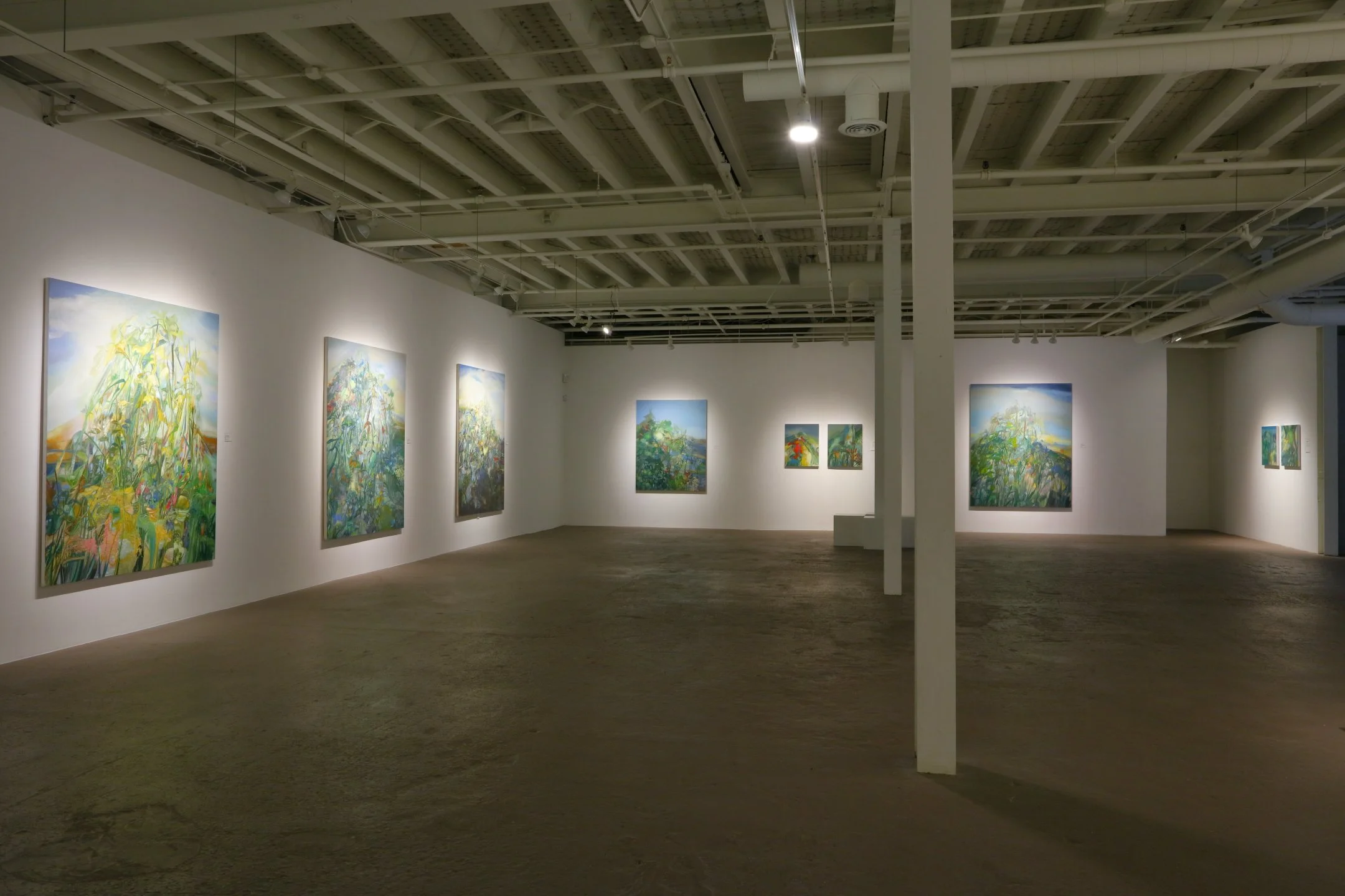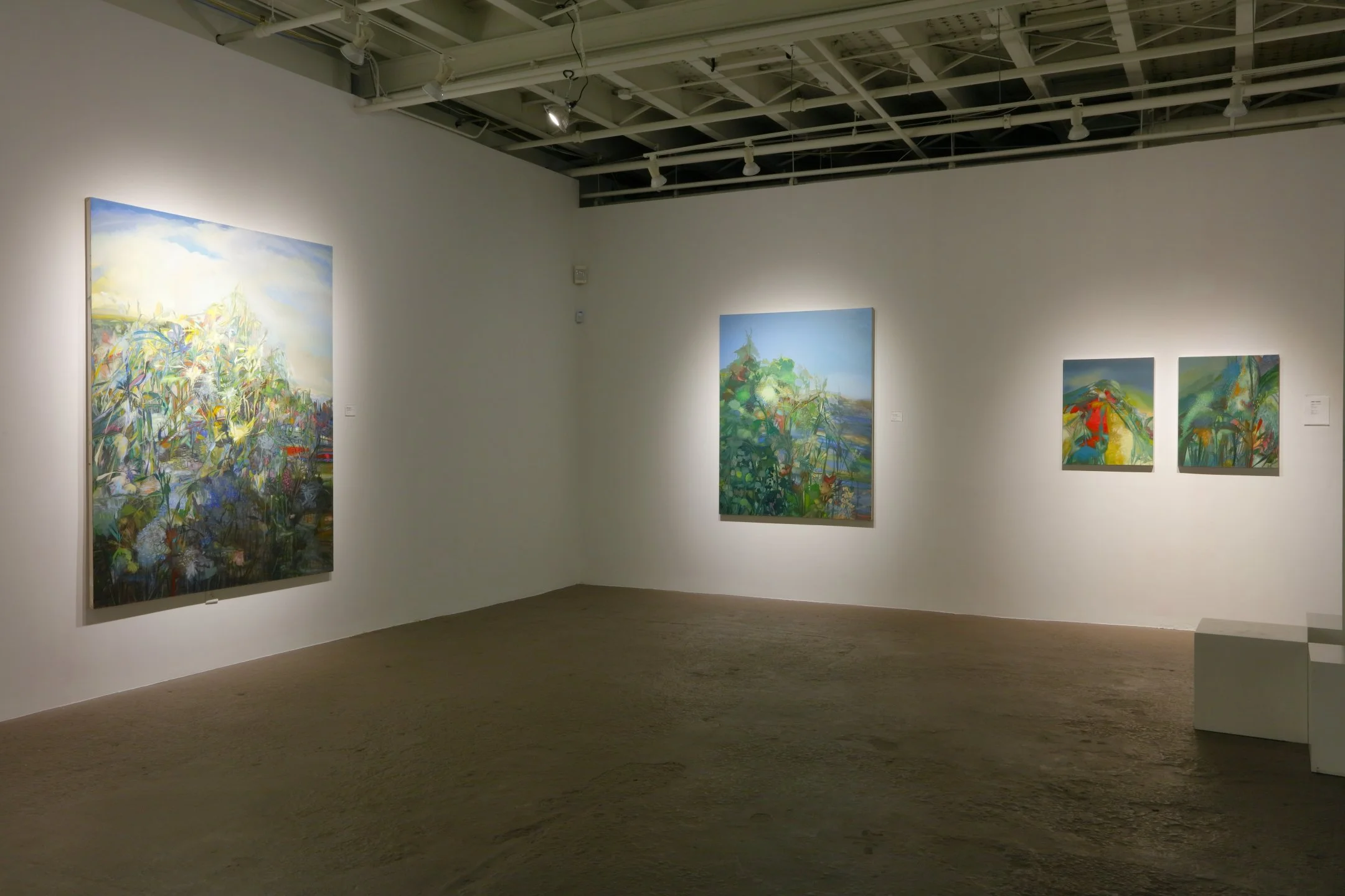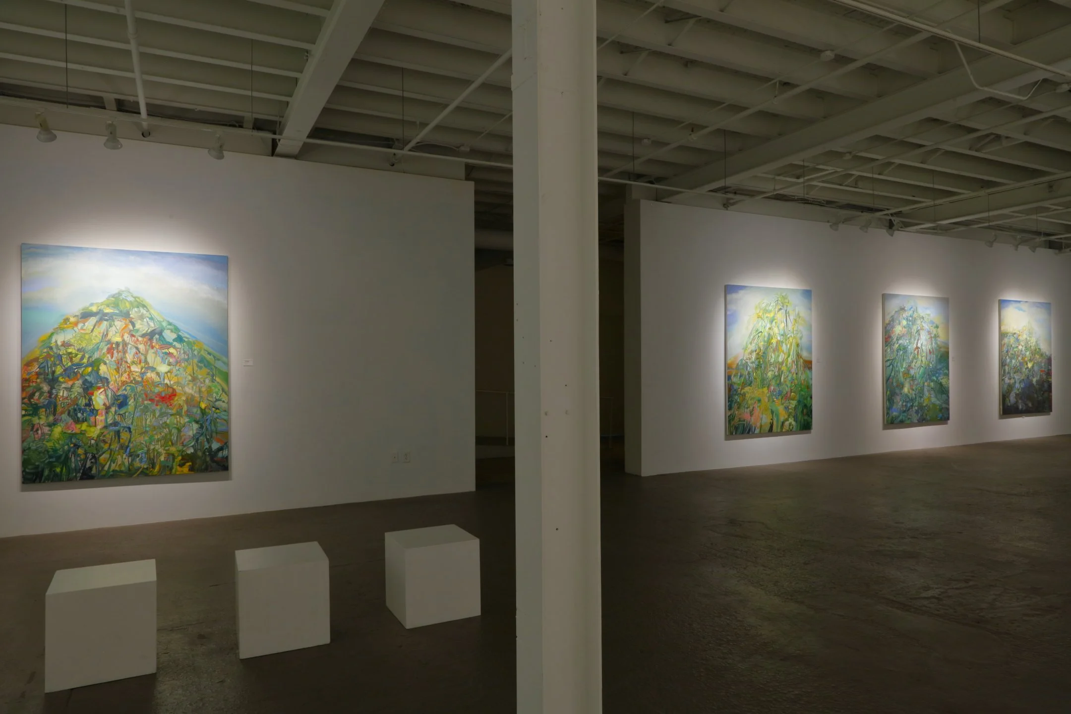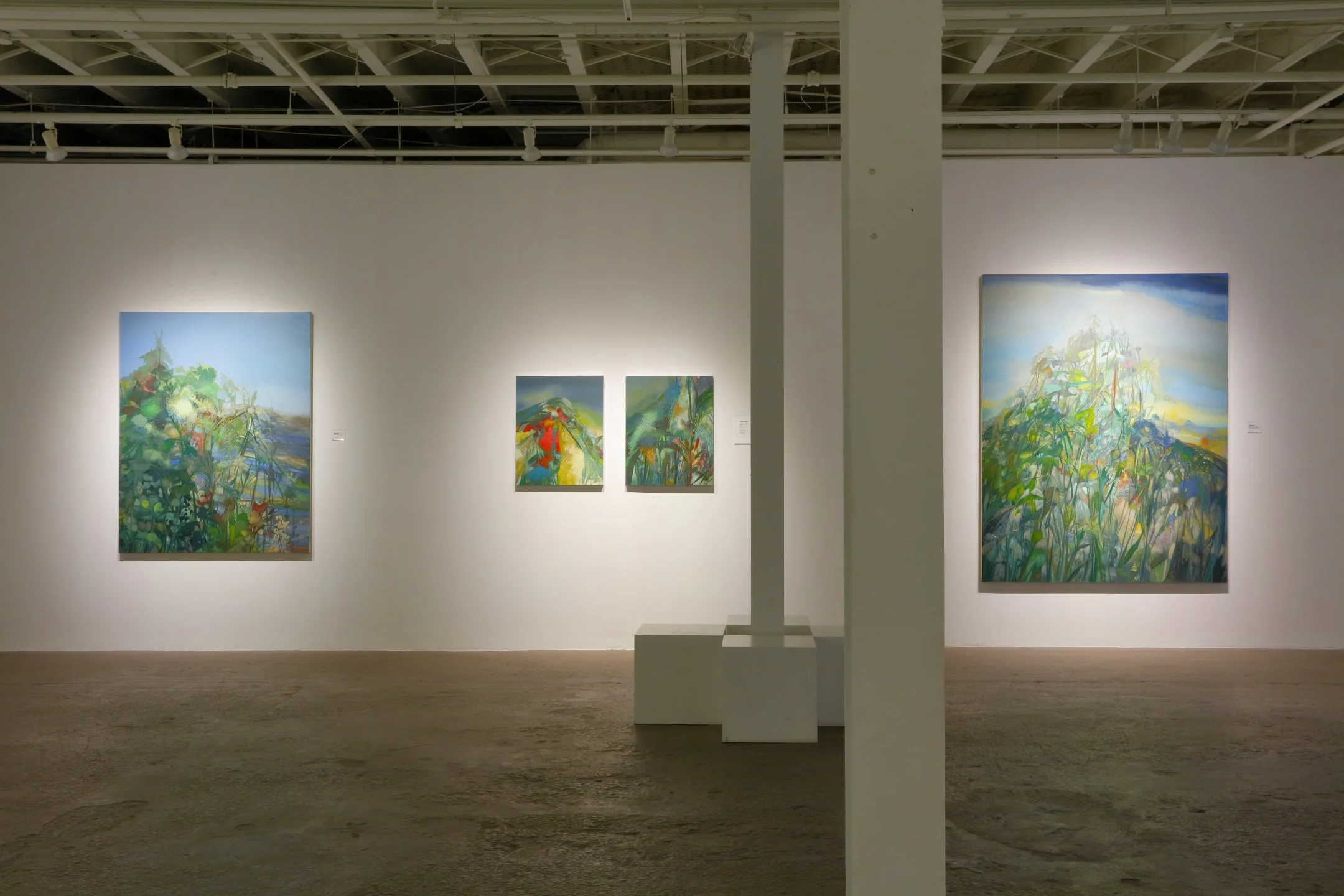 Pictured on far wall on left: Mirage, 2023, 76 x 66 inches, acrylic on canvas